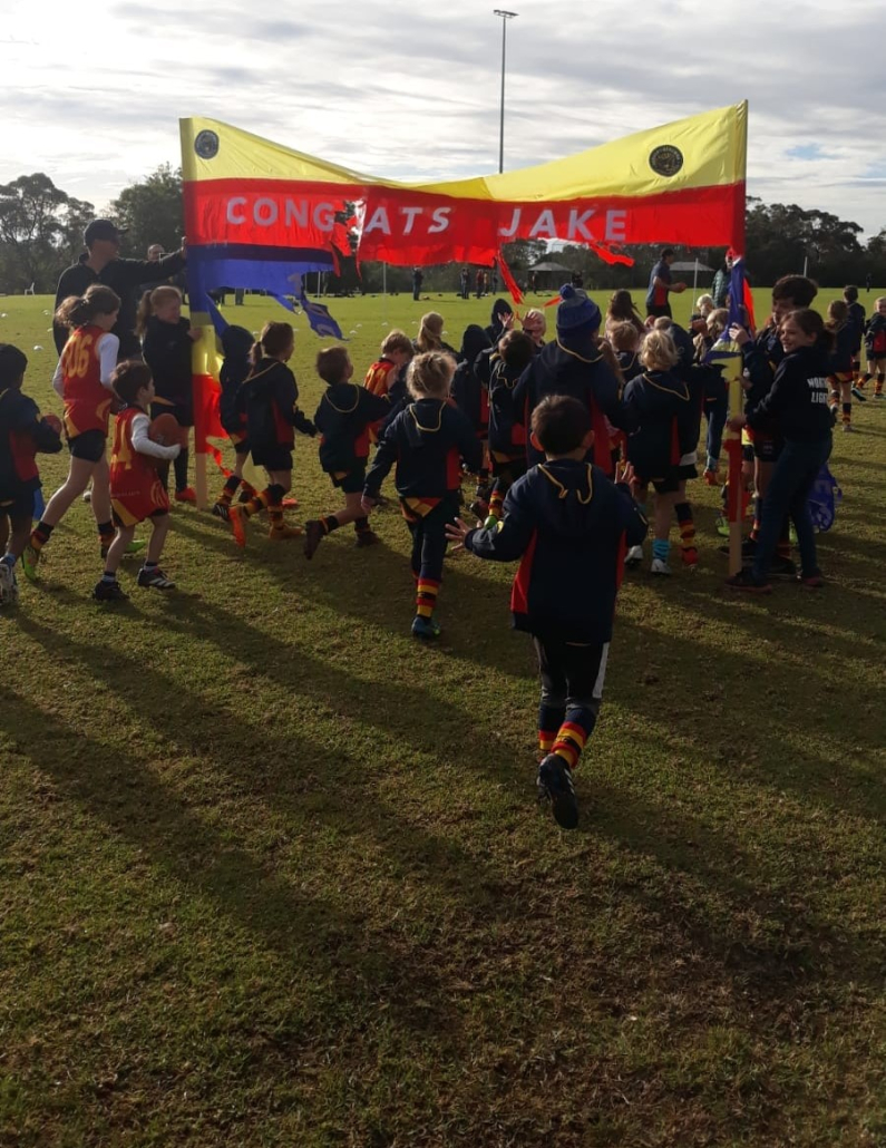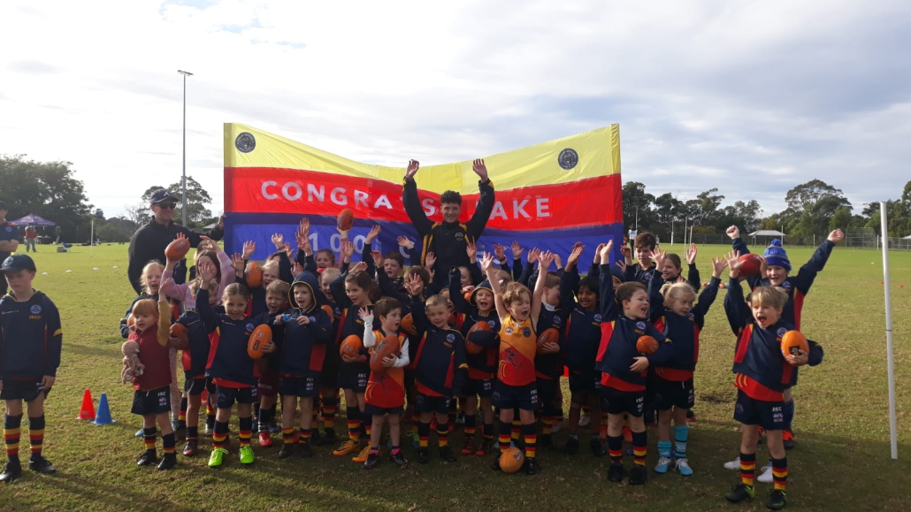 Another special morning at Auskick – this time with our Auskickers helping celebrate Jake’s 100th game complete with banner & cake! Congratulations Jake & thank you to all the kids for getting involved with the celebrations!