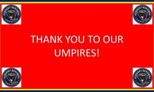 A huge thank you to the following people, who do an amazing job umpiring! Without these people, our kids wouldn’t have games to play!